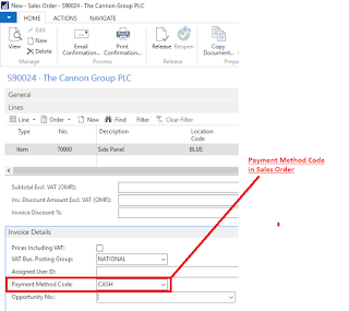 2. Attach the Payment method in the sales order under Invoice Detail TAB