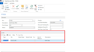 2. Create a Total discount describe it as Golf Clubs Offer, Put Validation period as 1 and Price Group as ALL.